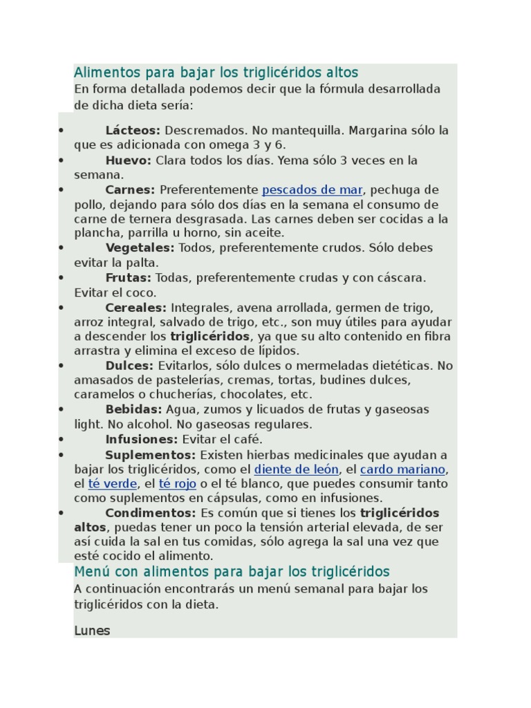 Menu Semanal Para Bajar Los Trigliceridos Altos Botanical Online Menú para bajar triglicéridos y perder peso.